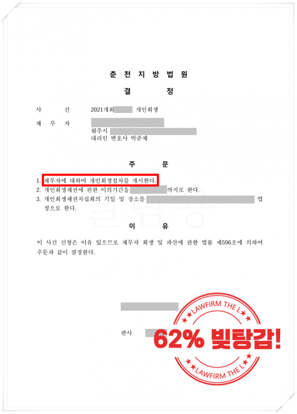 분류 개인회생 인터넷 도박에 대출금을 탕진한 의뢰인의 개인회생 작성자 정보 작성자 최고관리자 작성일 2022.06.16 17:32 컨텐츠 정보 조회 4,460 목록 답변 글쓰기 본문 <개요>직업 : 영업소득자소득(월) : 약 120만원채무 : 약 7700만원변제계획 : 약 50만원 x 60개월변제율 : 원금의 약 38%<사건 내용>평소 소박하게 가게를 운영하던 의뢰인은 손님을 통해 인터넷 도박에 대해 알게 되었고, 손님의 권유로 갑작스럽게 인터넷 도박에 빠지게된 케이스입니다. 대출을 받아 인터넷 게임에 투자를 하고, 손해가 막심하자 원금 회수의 목적으로 계속해서 투자를 하게된 게 지금까지 불어나 본인의 힘으로는 상환이 어려운 상황까지 왔습니다. 그 후 열심히 영업을 하여 부채 상환을 시도했지만 코로나로 인해 매출이 오히려 더 감소하게 되자 부채 상환이 더욱 어려워져 개인회생을 신청하게 되었습니다. <더엘의 조력>불법 인터넷 도박이 주된 채무요인이이었던 해당 사건은 대출을 받아 정상적으로 사용을 한 형태가 아니므로, 도박에 사용된 금액 전액을 청산가치에 반영될 경우 변제금이 크게 올라갈 수 있는 요인들이었습니다.이에 법률사무소 더엘은 변제금이 크게 올라갈 경우, 영업순이익이 많지 않은 신청인이 높은 변제금을 내며 생계유지 및 개인회생의 지속 수행 가능성에 대한 우려가 있음을 설명하며 변제금을 증액하지 않았고, 의뢰인이 현재 깊은 반성을 하고 있는 점 등을 철저하게 소명하여 변제기간이 늘어났지만 자칫 잘못하면 회생신청 기각 및 채무 전액 변제가 될 수 있는 사건을 변제율 38%로 잘 마칠 수 있었던 사례입니다.<더엘의 소감>현재는 인가결정까지 이상없이 받고 새로운 미래를 위해 매달 성실히 변제금을 납부하고 계시며 잠깐의 실수로 도박을 하셨지만 면책 후 새로운 계획을 세우고 희망찬 모습을 보여주셔서 저희 더엘 또한 기분이 좋게 마무리 지을 수 있었습니다. 채무 증대 요인이 도박과 관련되어 있더라도 더엘만의 노하우로 충분히 통과시킬 수 있으니 부담없이 문의 주시기 바랍니다. 관련자료 이전 시어머니를 부양가족으로 인정받은 의뢰인의 개인회생 작성일 2022.06.21 17:50 다음 월세보증금 목적으로 받은 채무가 불어난 의뢰인의 개인회생 작성일 2022.06.13 15:21 댓글 0개 등록된 댓글이 없습니다. 목록 답변 글쓰기